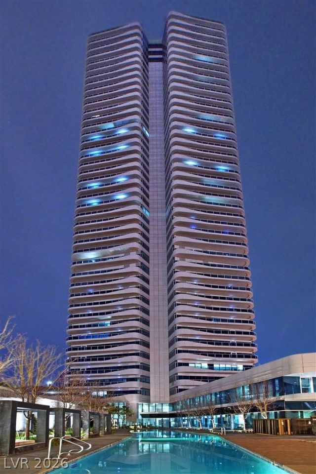 Luxury high rise condo on the 21st floor with great North Strip and mountain views. Hardwood floors and electric shades throughout. Granite countertops, Carrera Marble in kitchen and bathrooms, and upgraded washer/dryer. This building features massage rooms, indoor and outdoor hot tub, pool with cabanas, BBQ grill, car service, and much more.